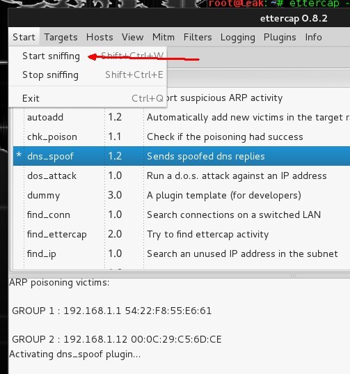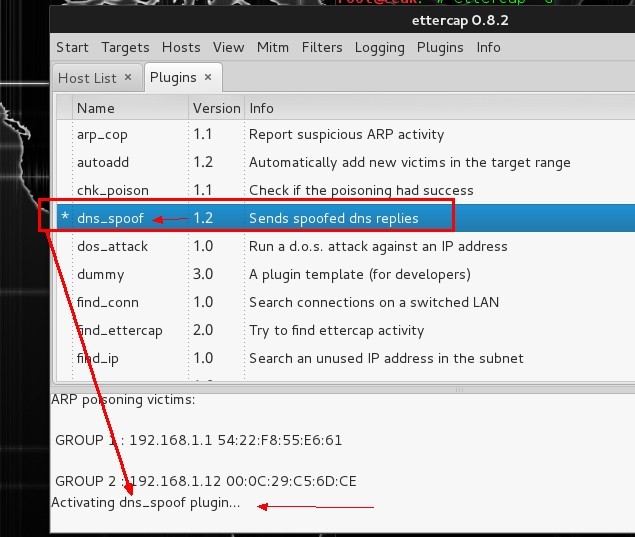 我们要进行的是DNS欺骗,双击dns_spoof可以看见下边的提示